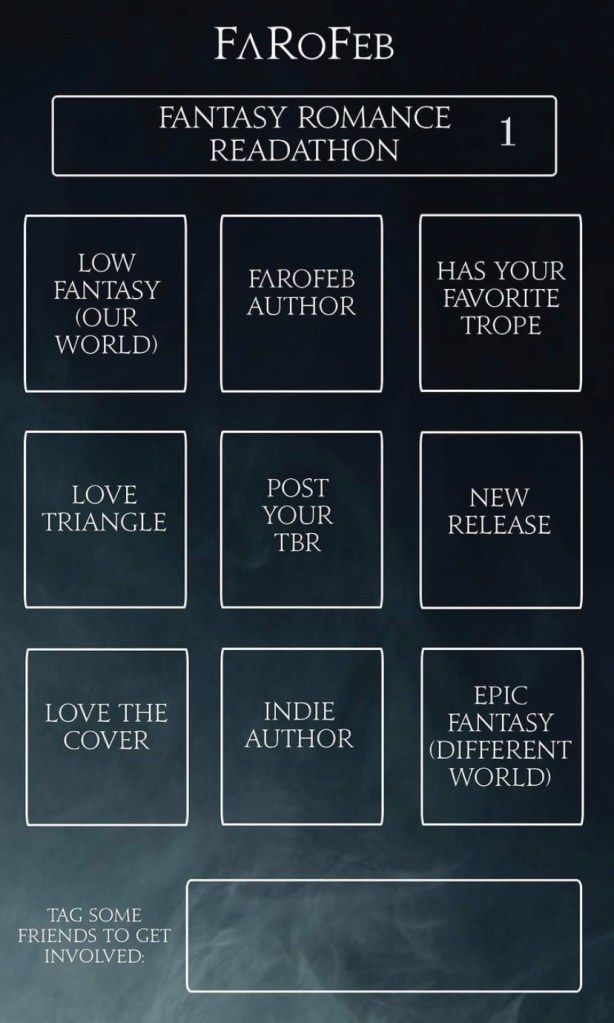 This is hosted on instagram by fantasy romance author H. R. Moore! There are so many events happening all month long hosted by many authors and content creators! It looks so fun and I am already having a blast. Below are the bingo boards. I hope to hit bingo! I will let you know in my wrap-up if I was able to and how I did it.